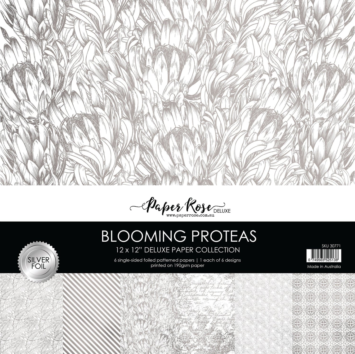 Blooming Proteas - Silver Foil 12x12 Paper Collection 30771 - Paper Rose Studio